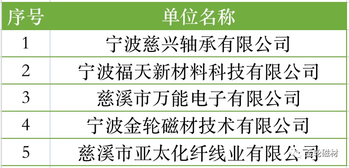 เมื่อเร็วๆ นี้ สำนักงานเศรษฐกิจและเทคโนโลยีสารสนเทศเทศบาลหนิงโปได้ประกาศรายชื่อโรงงานสีเขียวระดับห้าดาวและสี่ดาวในหนิงโป (ครั้งที่ 1) และ Jinlun Magnetic Material ได้รับเลือกให้เป็นโรงงานสีเขียวในหนิงโปได้สำเร็จ มีการคัดเลือกวิสาหกิจทั้งหมด 9 แห่งใน Cixi City ในจำนวนนี้ มี 4 องค์กรได้รับเลือกให้เป็นโรงงานสีเขียวระดับ 5 ดาว และ 5 องค์กรได้รับเลือกให้เป็นโรงงานสีเขียวระดับ 4 ดาว