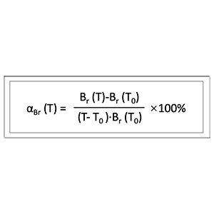 ในบรรดาสิ่งเหล่านั้น Br(T) และ Br(T0) คือค่าคงเหลือที่อุณหภูมิ T และอุณหภูมิอ้างอิง T0 ตามลำดับ โดยปกติแล้วอุณหภูมิห้องหรือ 20°C จะถูกเลือกเป็น T0 และค่าของอุณหภูมิสูง T จะต้องถูกกำหนดโดยทั้งซัพพลายเออร์และผู้เรียกร้องตามสภาพแวดล้อมการใช้งาน ถ้า αBr เป็นบวก หมายความว่าปริมาณคงเหลือเพิ่มขึ้นเมื่ออุณหภูมิเพิ่มขึ้น ถ้าเป็นลบก็หมายความว่าปริมาณคงเหลือลดลงเมื่ออุณหภูมิเพิ่มขึ้น