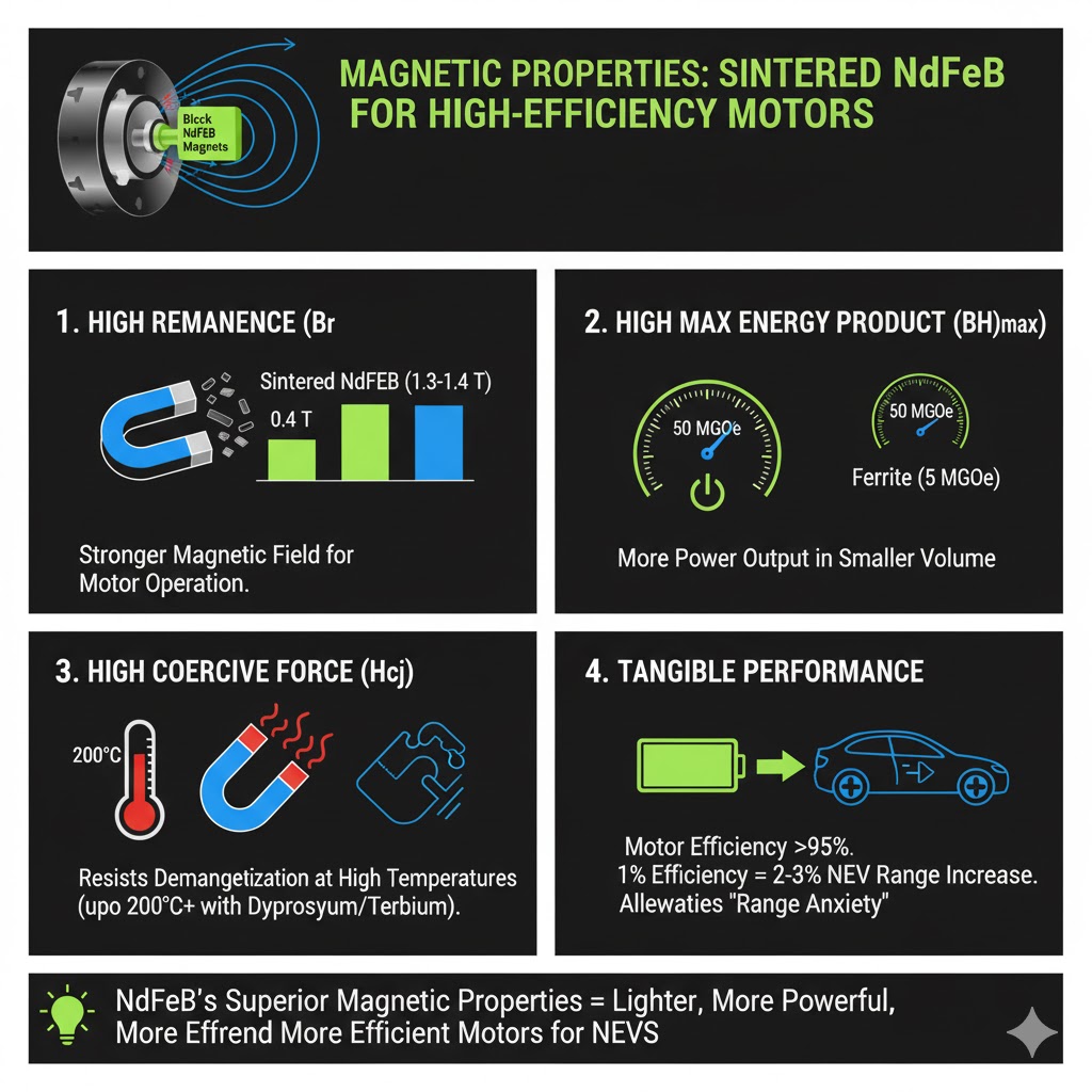 คุณสมบัติแม่เหล็กใดที่ทำให้แม่เหล็ก NdFeB เผาผนึกไม่สามารถถูกแทนที่สำหรับมอเตอร์ประสิทธิภาพสูง